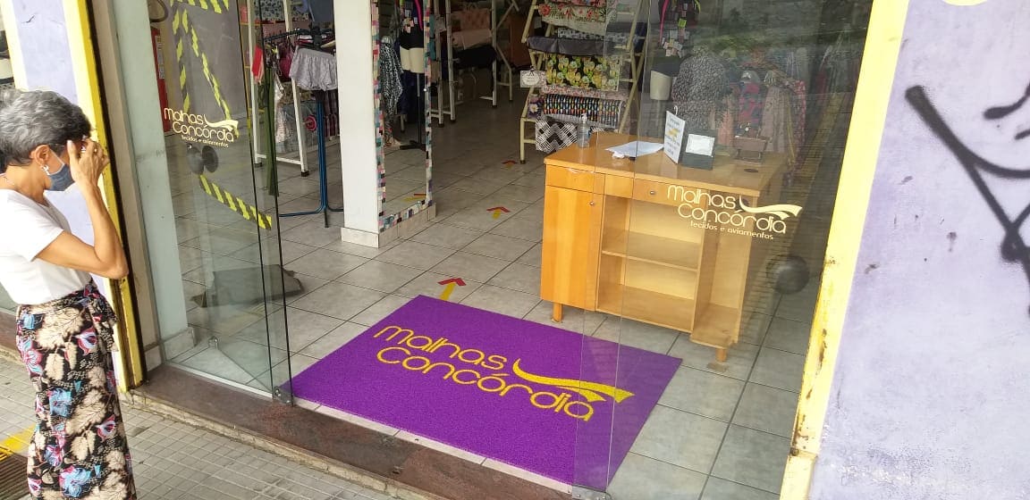 O capacho pode não só ajudar a controlar a entrada de poeira no ambiente, mas também ter uma função estética ou de agregar para sua empresa anunciar.